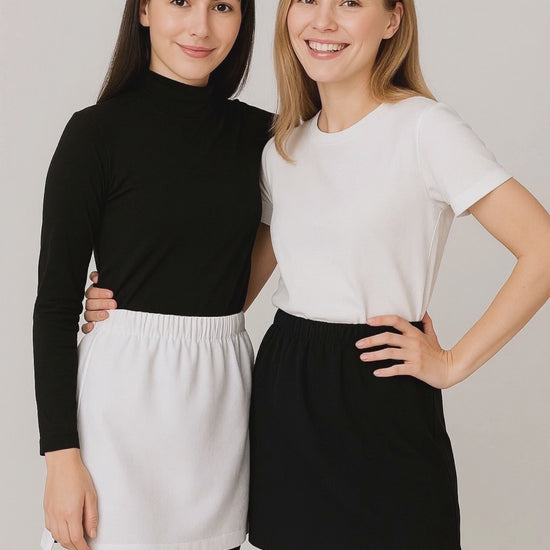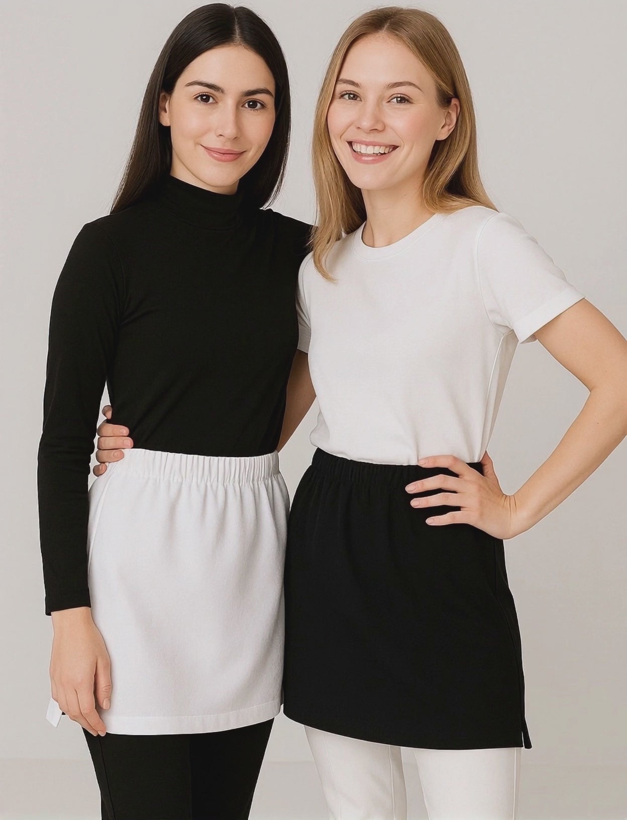 Mirach Textile's two-piece shirt-skirt set, available in black and white, is the ideal complement to both classic and modern outfits. The poplin fabric is lightweight, breathable, and comfortable. Its sporty design makes it easy to pair with tunics and sweatshirts.
