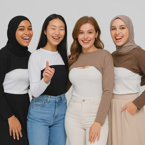 Mirach Textile's black crew neck cuff is an ideal complement to modest wear with its practical and covering design. Its integrated cuff design makes it easy to wear under short-sleeved and low-necked garments. Its soft and stretchy fabric provides all-day comfort.