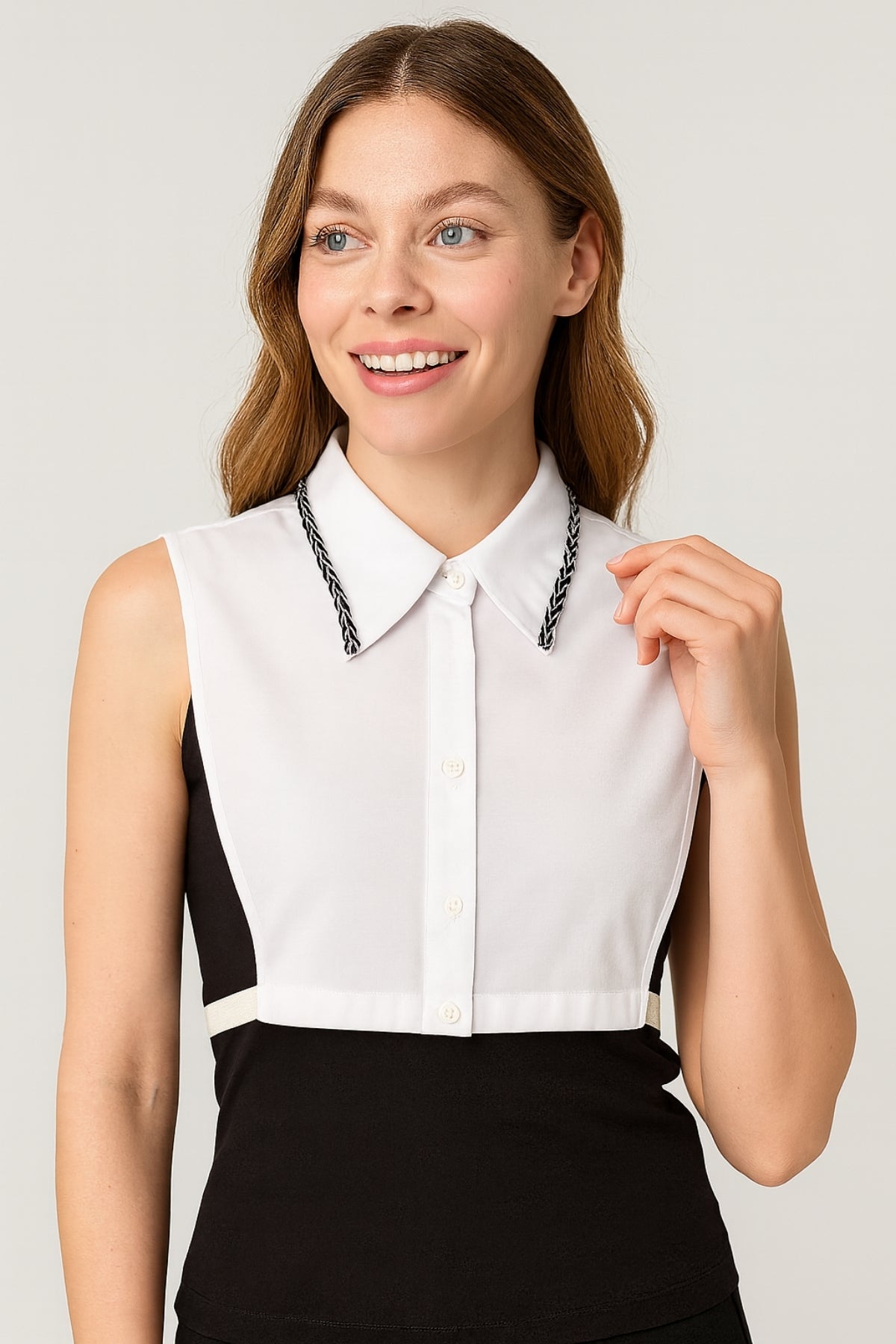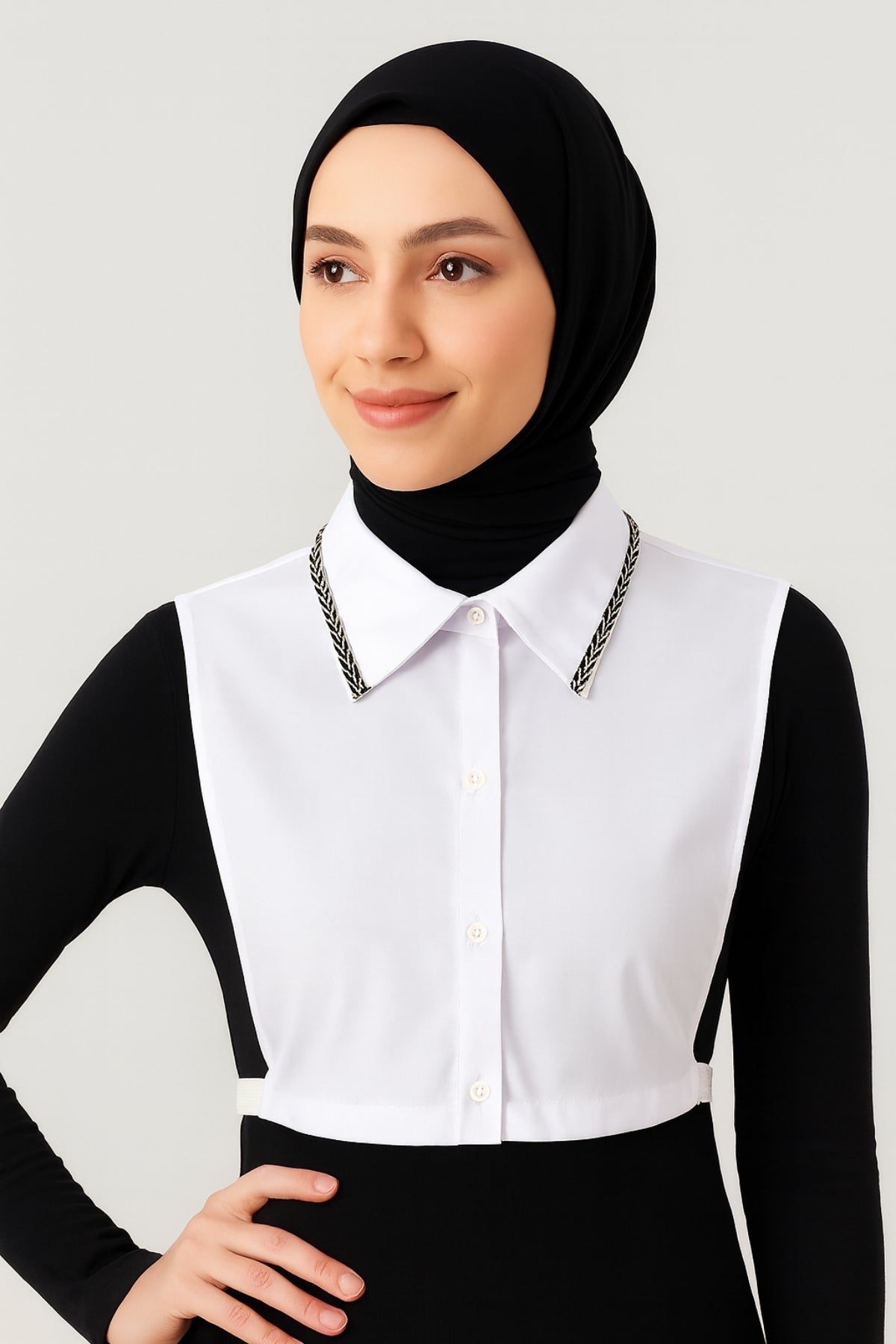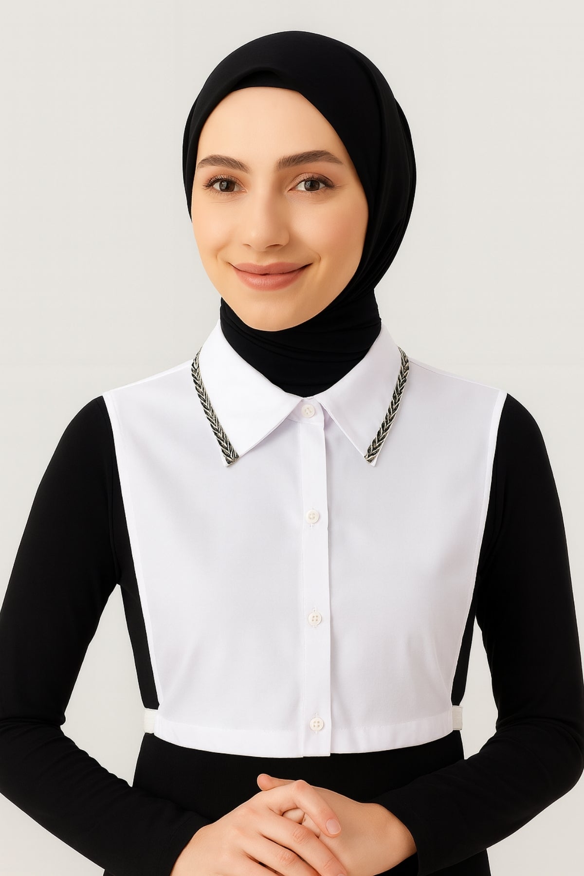 Mirach Textile's silver glitter shirt collar combines classic lines with modern sparkle. This striking silver glitter detail adds an elegant touch to both casual outfits and special occasions. Its lightweight construction and high-quality fabric ensure all-day comfort.
