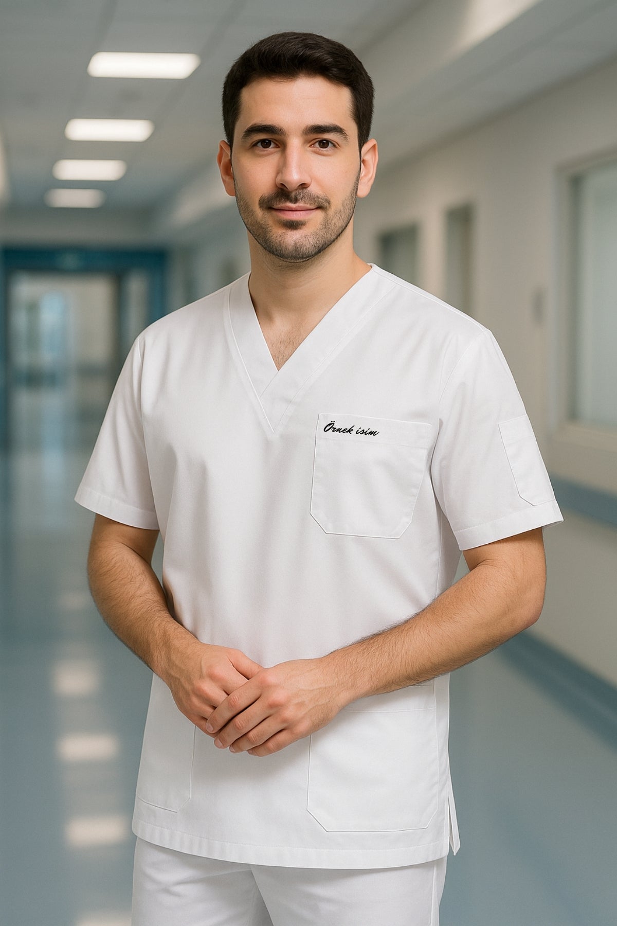 Mirach Med Kişiye Özel İsimli 4 Cepli Scrubs Forma ile hastane ve klinik ortamında profesyonel ve özgün bir görünüm elde edin.