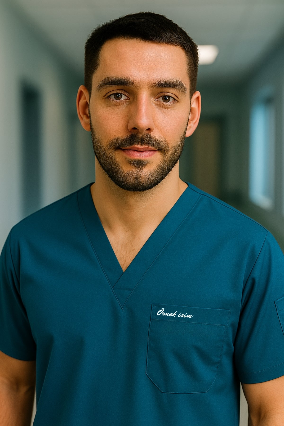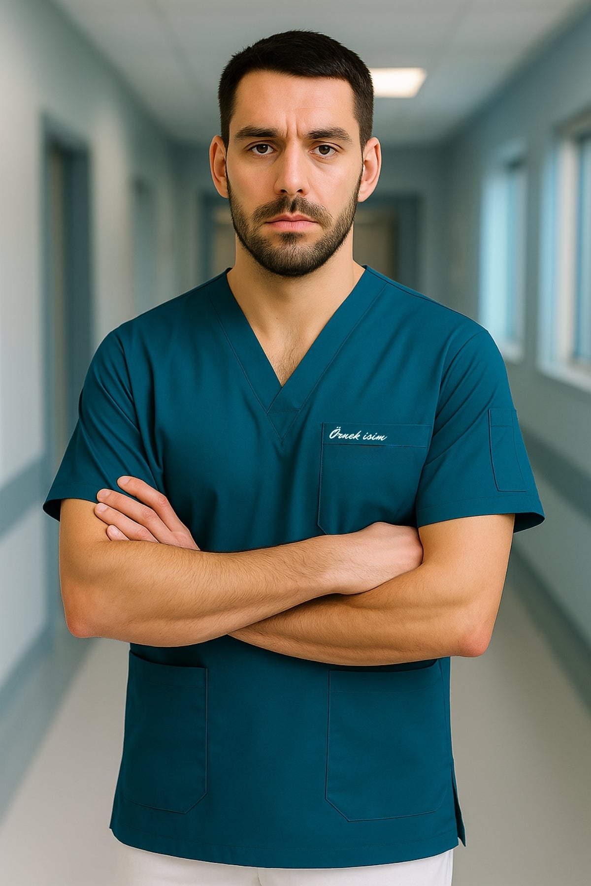 Mirach Med Kişiye Özel İsimli 4 Cepli Scrubs Forma ile hastane ve klinik ortamında profesyonel ve özgün bir görünüm elde edin.