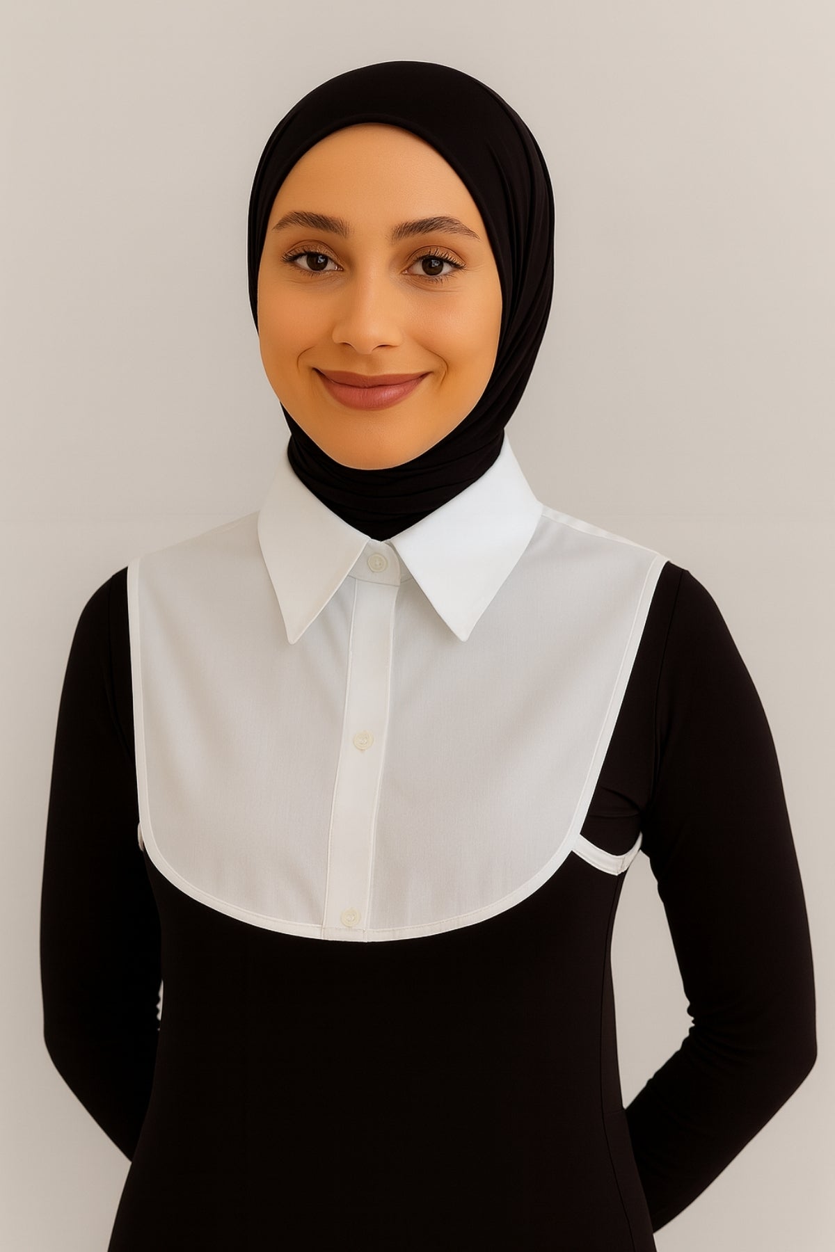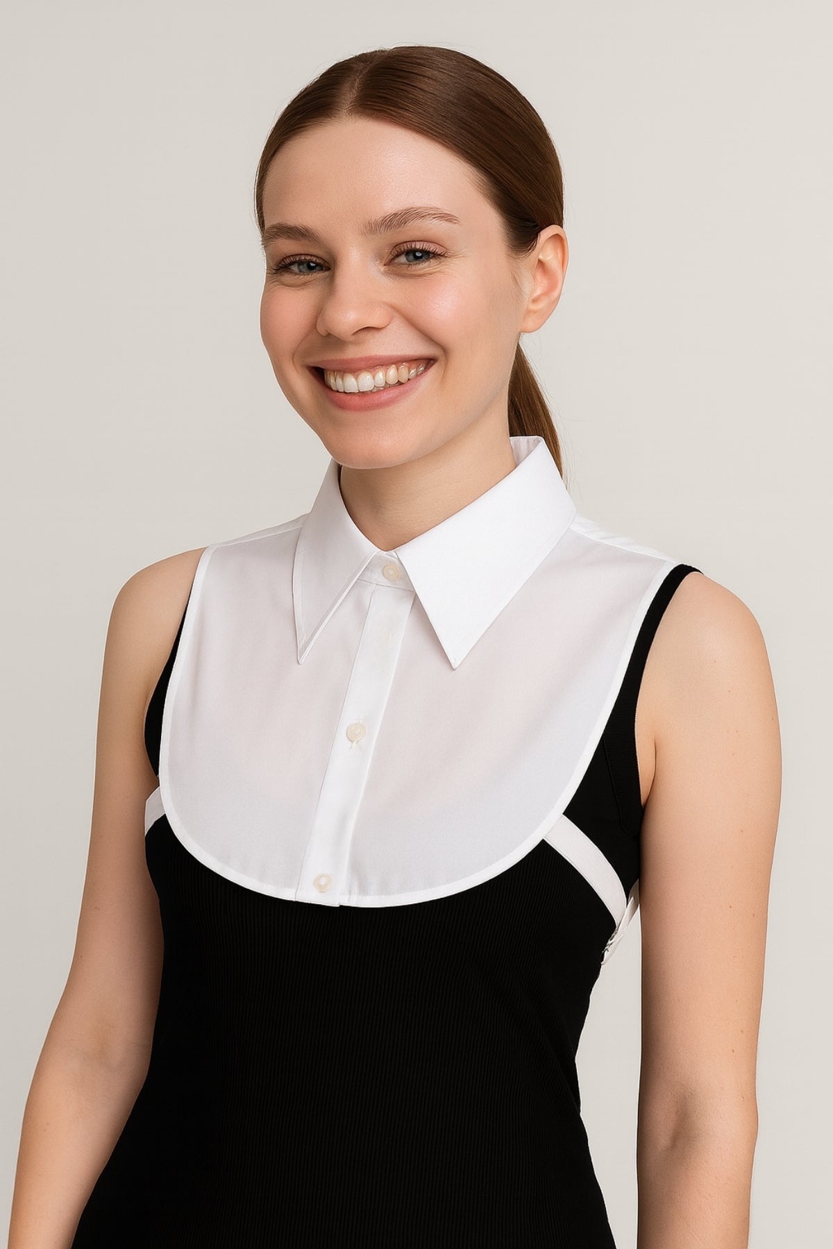 Mirach Textile's white mini classic shirt collar offers a wide range of uses, from everyday outfits to special occasion chic, with its simple yet effective look. Its lightweight construction and high-quality fabric combine comfort with a stylish look.