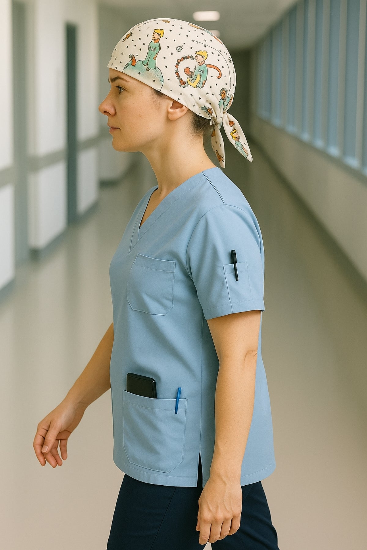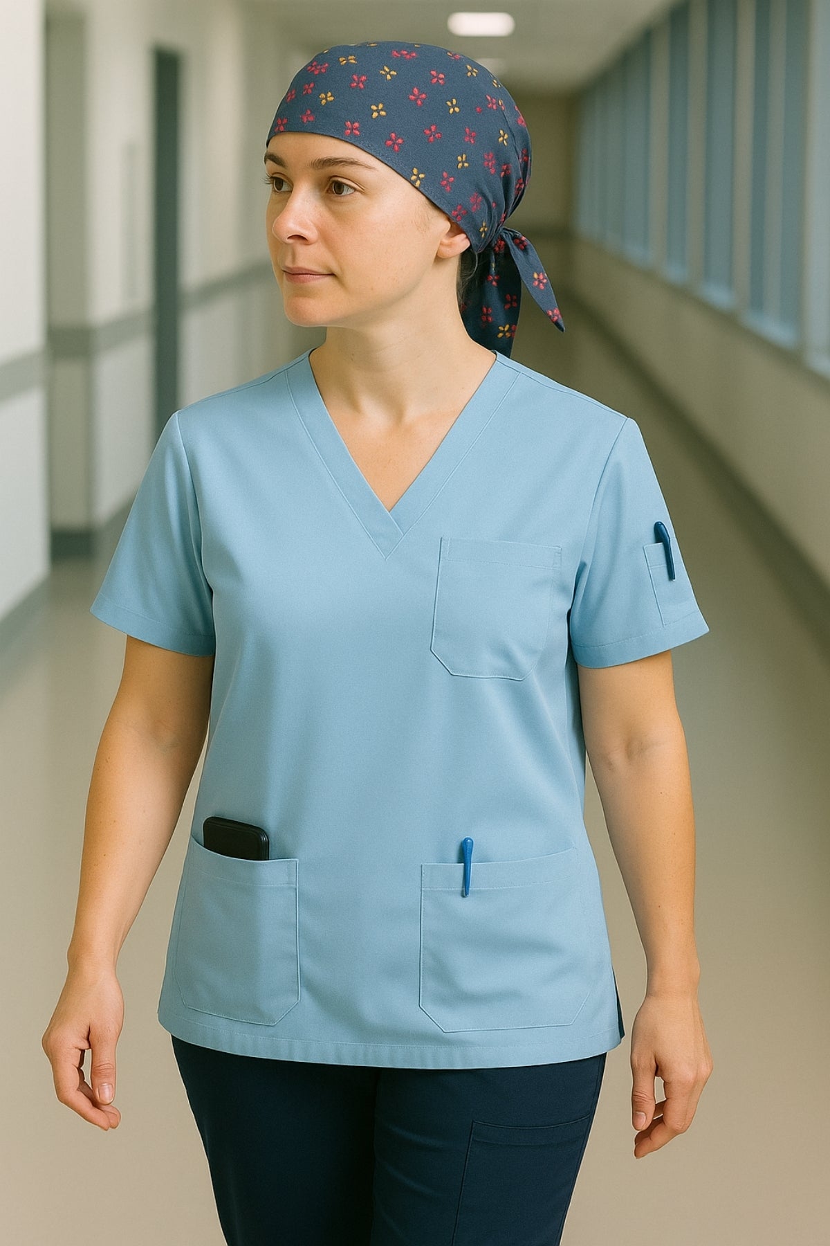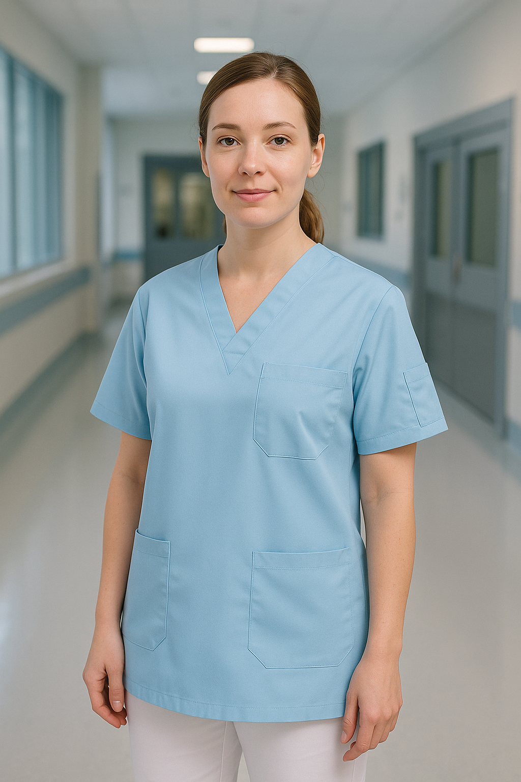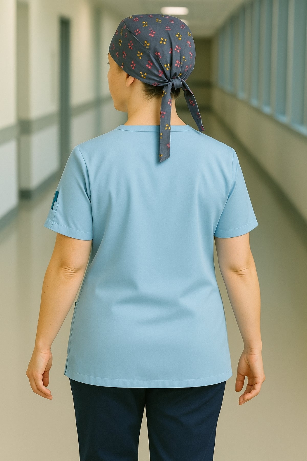 Mavi tek üst scrubs forma, sağlık çalışanlarının uzun saatler boyunca ihtiyaç duyduğu konforu ve dayanıklılığı bir arada sunar. %67 PES ve %33 pamuk karışımı özel kumaşı sayesinde terletme ve solma yapmaz, gün boyu nefes alabilen yapısı ile ferahlık sağlar. Unisex kalıpta üretilmiştir; hem kadın hem erkek sağlık çalışanları için uygundur. Kolay ütülenebilir yapısı ile çok buruşma yapmaz, pratik cepleri ile işlevsellik sunar. Klinikler, hastaneler ve laboratuvarlar için profesyonel bir seçimdir.