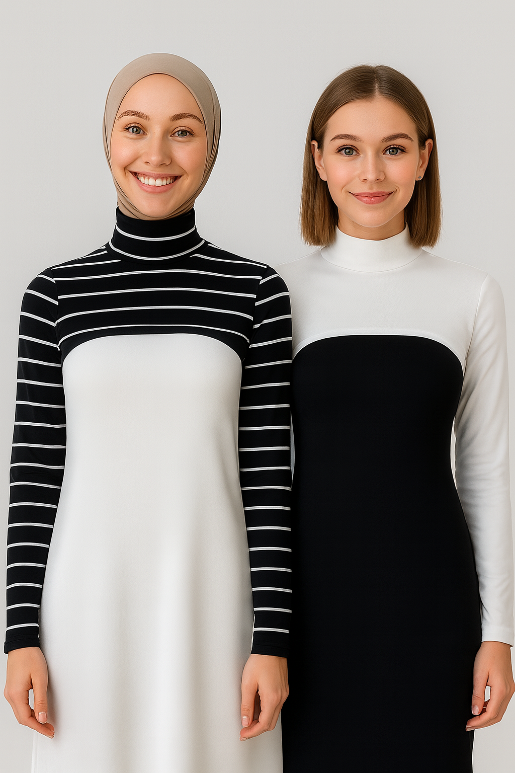 2’li Paket Dik Yaka Boyunluklu Kolluk Seti – Çizgili & Beyaz, gardırobunuzda “her an lazım olan” temel parçaları bir arada sunuyor. Bir pakette iki renk olması, hem stil özgürlüğü hem de ekonomik avantaj sağlıyor.