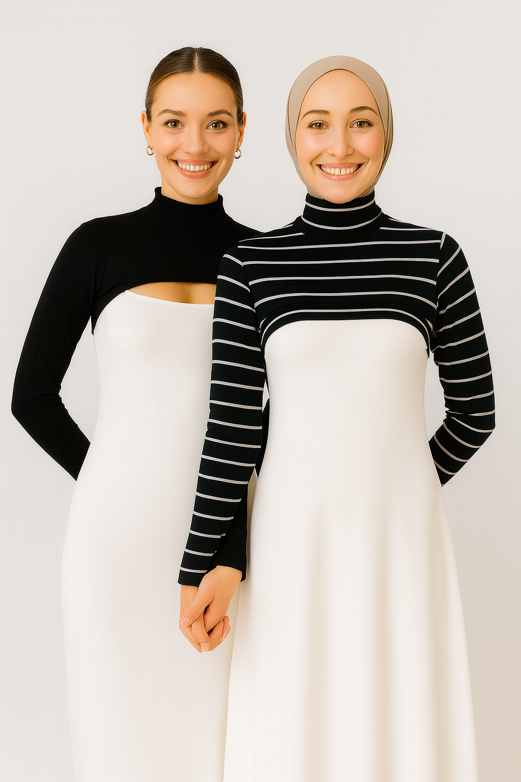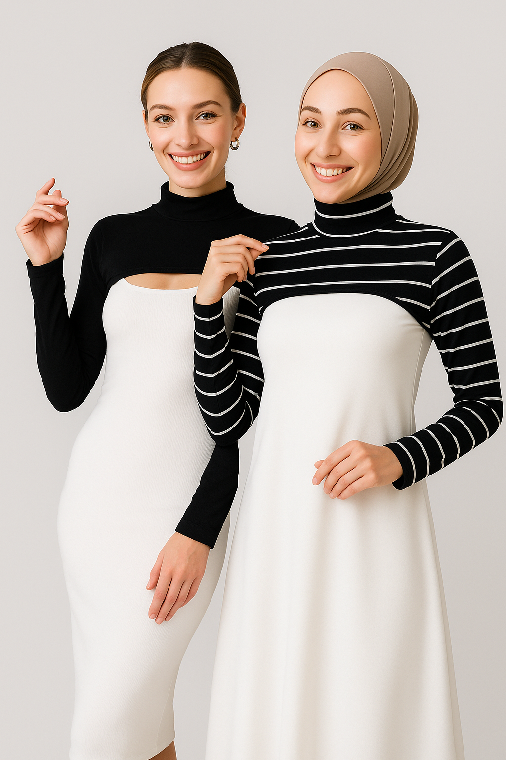 2’li Paket Dik Yaka Boyunluklu Kolluk Seti – Çizgili & Siyah, gardırobunuzda “her an lazım olan” temel parçaları bir arada sunuyor. Bir pakette iki renk olması, hem stil özgürlüğü hem de ekonomik avantaj sağlıyor.