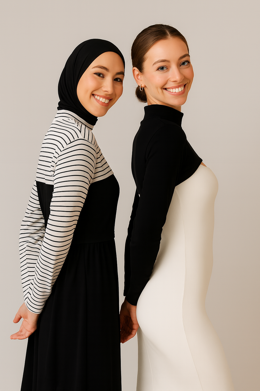 Dik yaka tasarımı sayesinde boyun kısmını zarifçe kapatır ve açık yakalı üstlerde ekstra içlik ihtiyacını ortadan kaldırır. Boyunluk ve kolluk entegre formda olduğu için tek parça ile pratik kullanım sunar — kayma, toplama veya ekstra iç parça arama derdi yok!