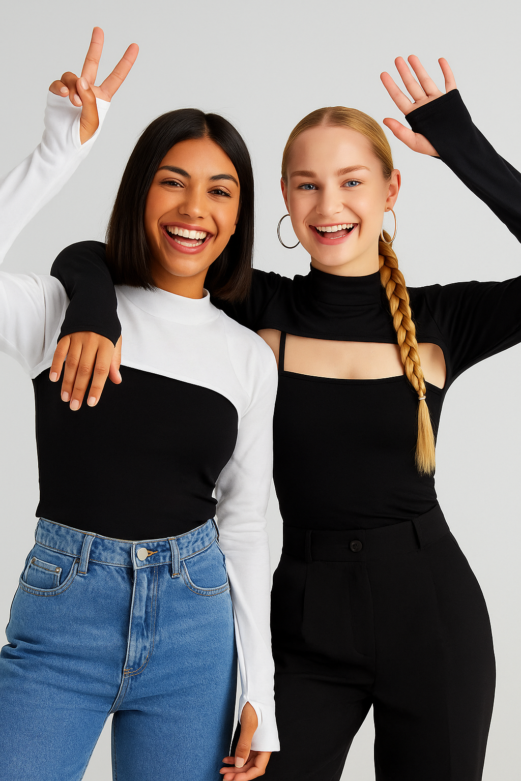 Mirach Textile’in ikili set halinde siyah ve beyaz balıkçı parmaklı boyunluklu kolluğu, zarif tasarımı ve pamuklu yapısıyla tesettür giyimde şıklık ve konforu bir araya getirir. Yarım balıkçı yaka tasarımı boynu tam kapatırken, parmak geçirmeli kolluk yapısı gün boyu rahatlık sunar. Dört mevsim kullanıma uygun, cilt dostu bir içlik parçasıdır.