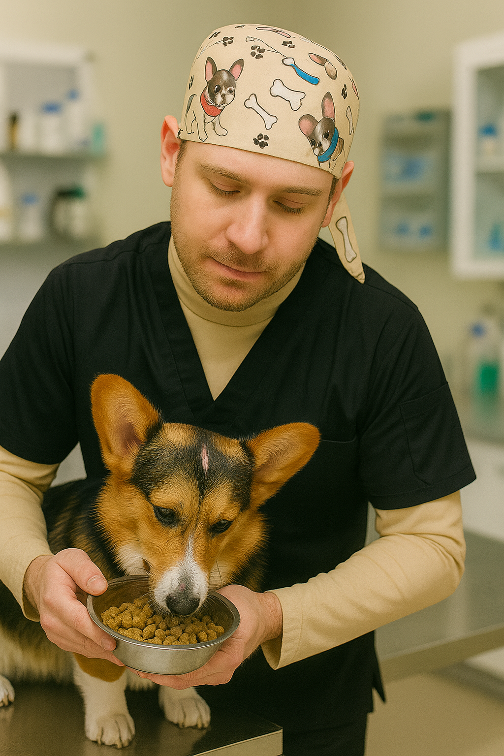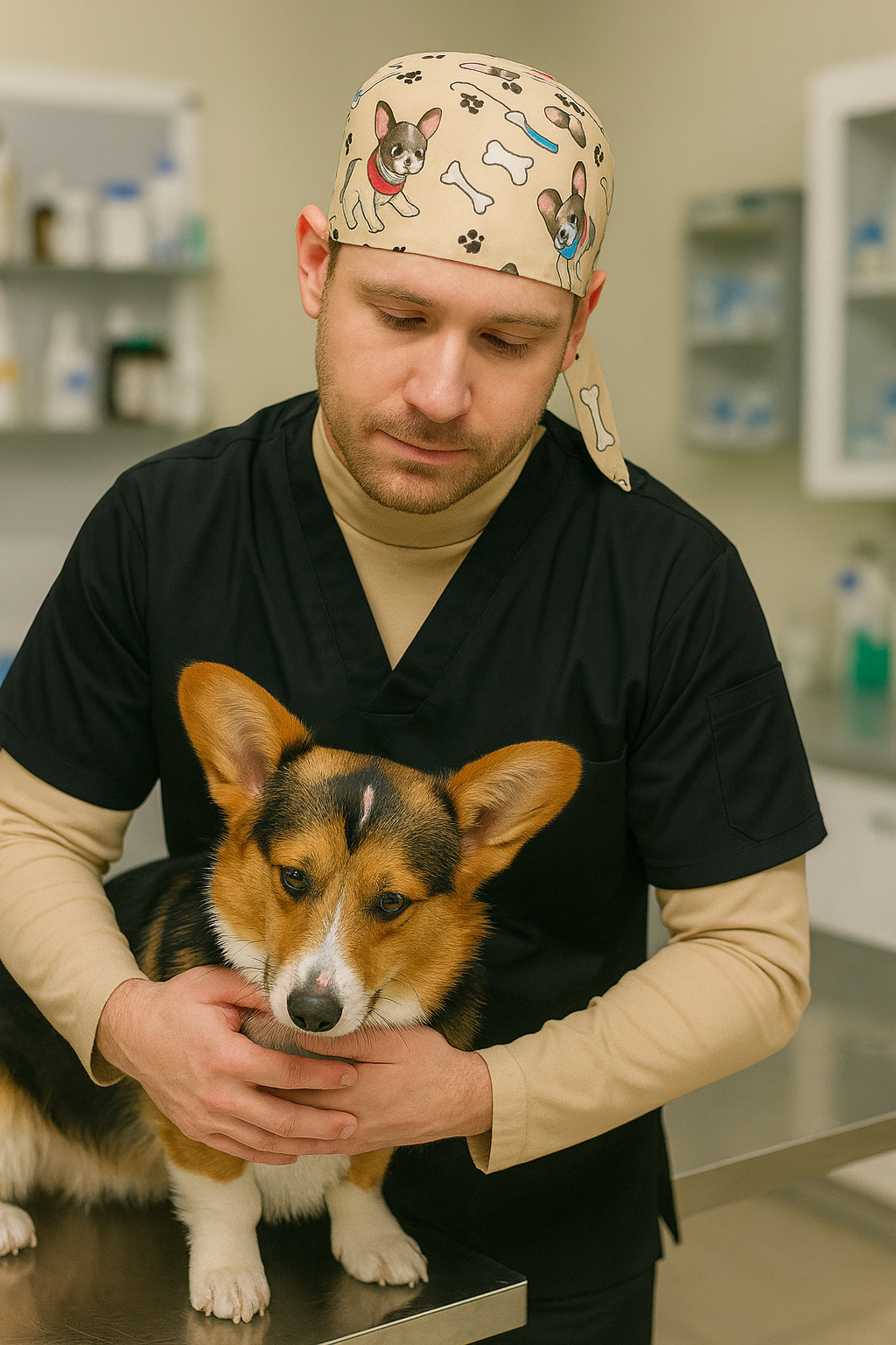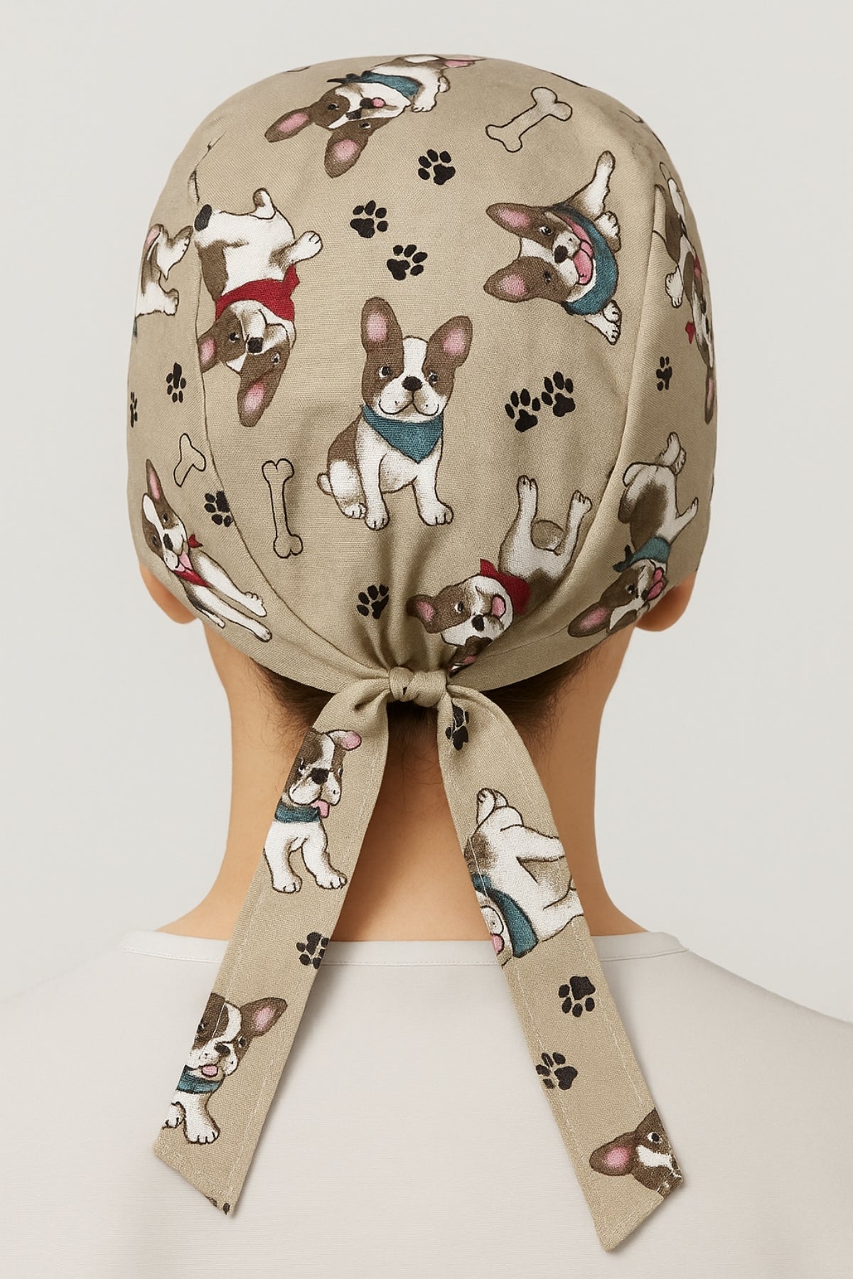 - Cerrahi Bone: Ayarlanabilir lastikli yapı, şirin köpek desenli kumaş