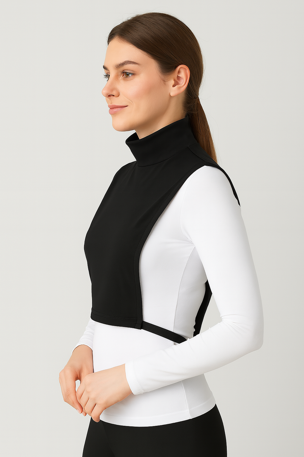 Şıklığı ve konforu bir arada sunan Siyah Balıkçı Kolsuz Boyunluk, günlük kombinlerin vazgeçilmez tamamlayıcısıdır. Yumuşak dokusu ve esnek yapısı sayesinde gün boyu rahat bir kullanım sunar. Balıkçı yaka tasarımıyla boyun bölgesini zarif bir şekilde sarar, kolsuz formu sayesinde ceket, gömlek, tunik ve hırkalarla rahatça kombinlenir.