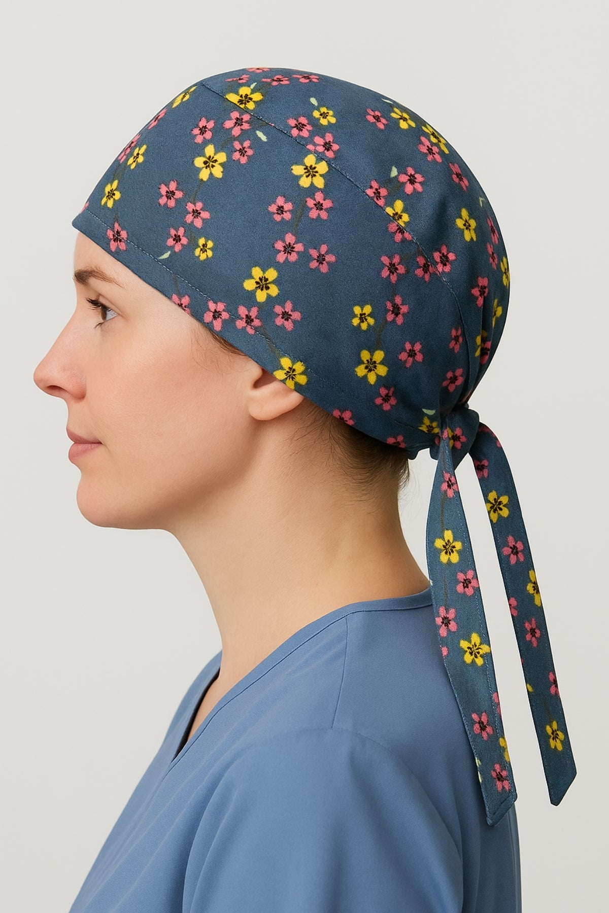 Doğal ve nefes alabilen %100 pamuk kumaştan üretilen bu çiçek desenli cerrahi bone, sağlık çalışanlarının uzun çalışma saatlerinde ihtiyaç duyduğu konforu sağlar. Yumuşak dokusu sayesinde başı terletmez, hijyenik bir kullanım sunar. Arka kısmındaki bağcıklı tasarımıyla kolayca ayarlanabilir ve her baş ölçüsüne uyum sağlar. Canlı çiçek desenleri ise çalışma ortamına zarif ve enerjik bir hava katar.