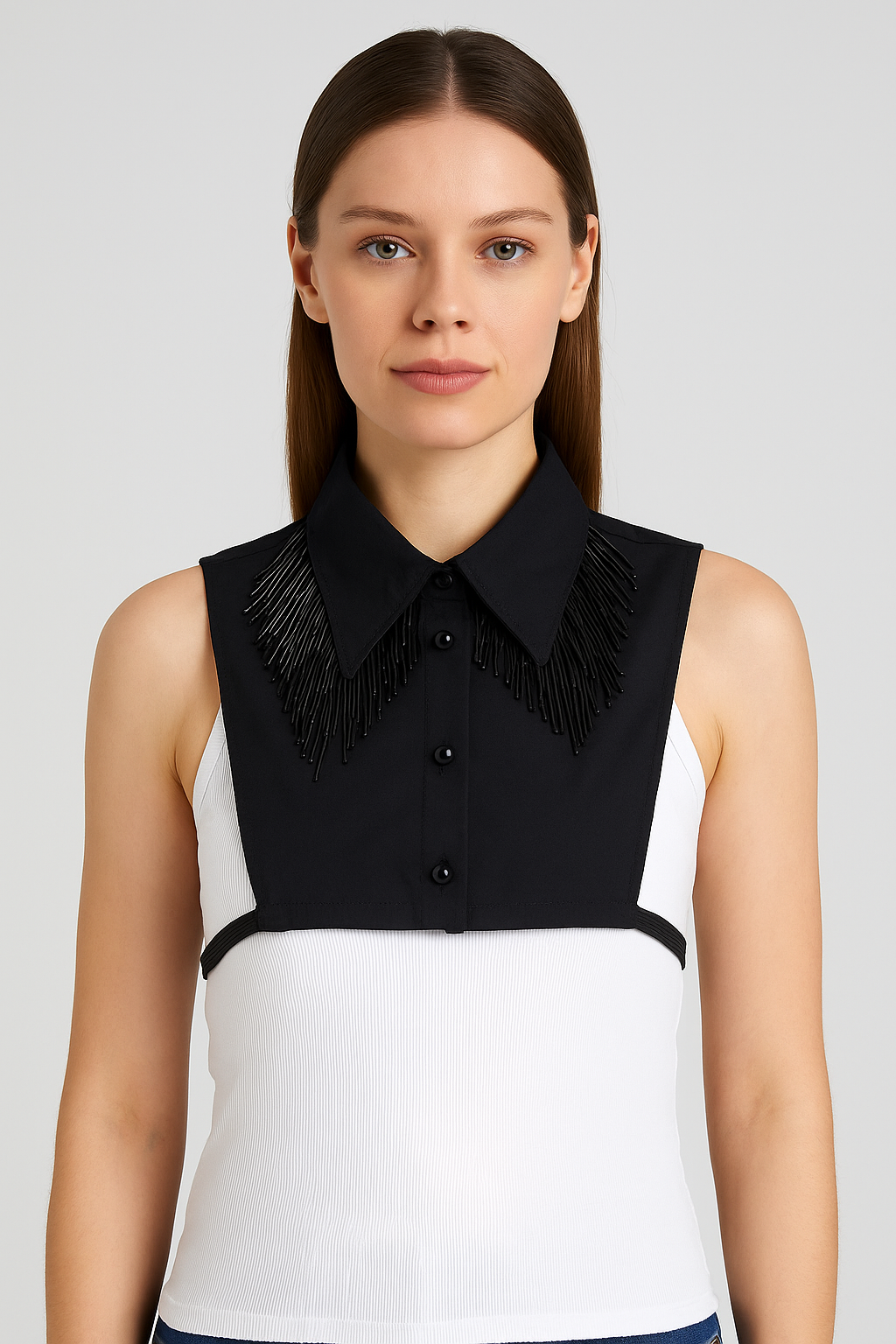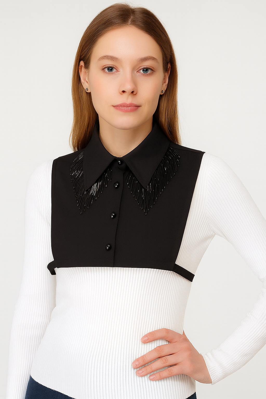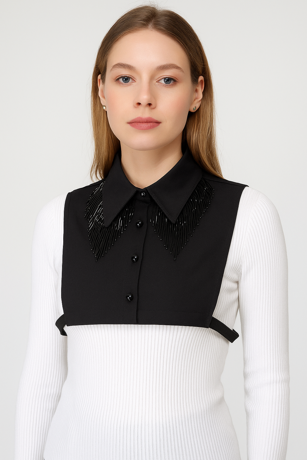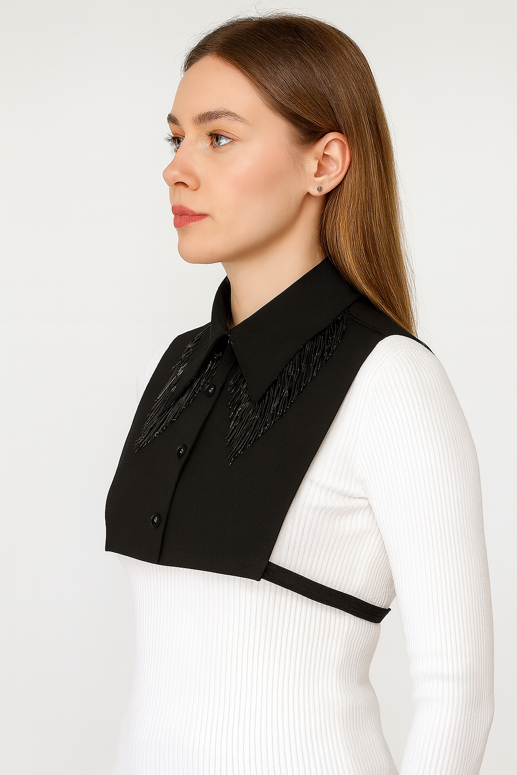 Gece Yarısı Işıltısı Gömlek Yakası - Siyah