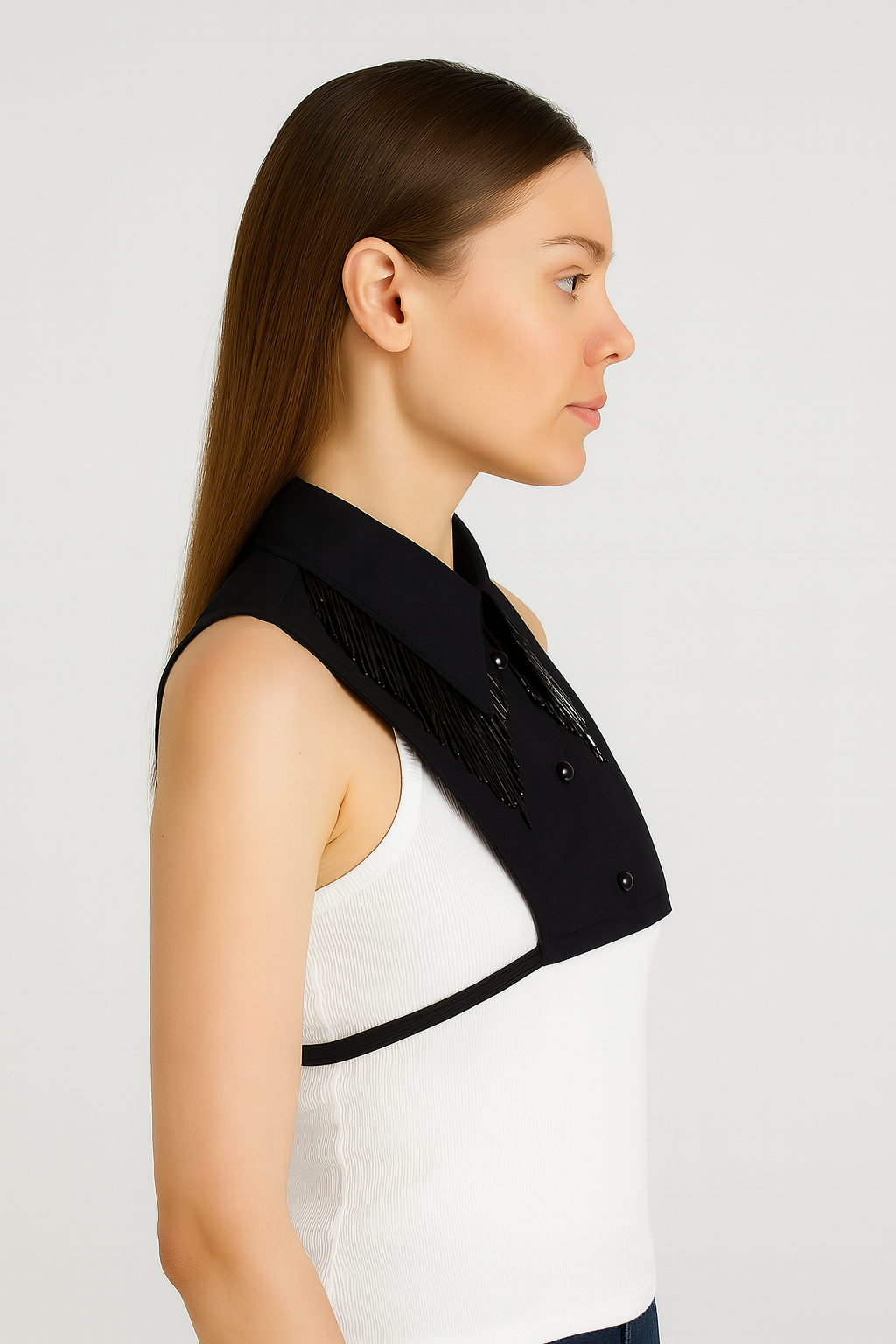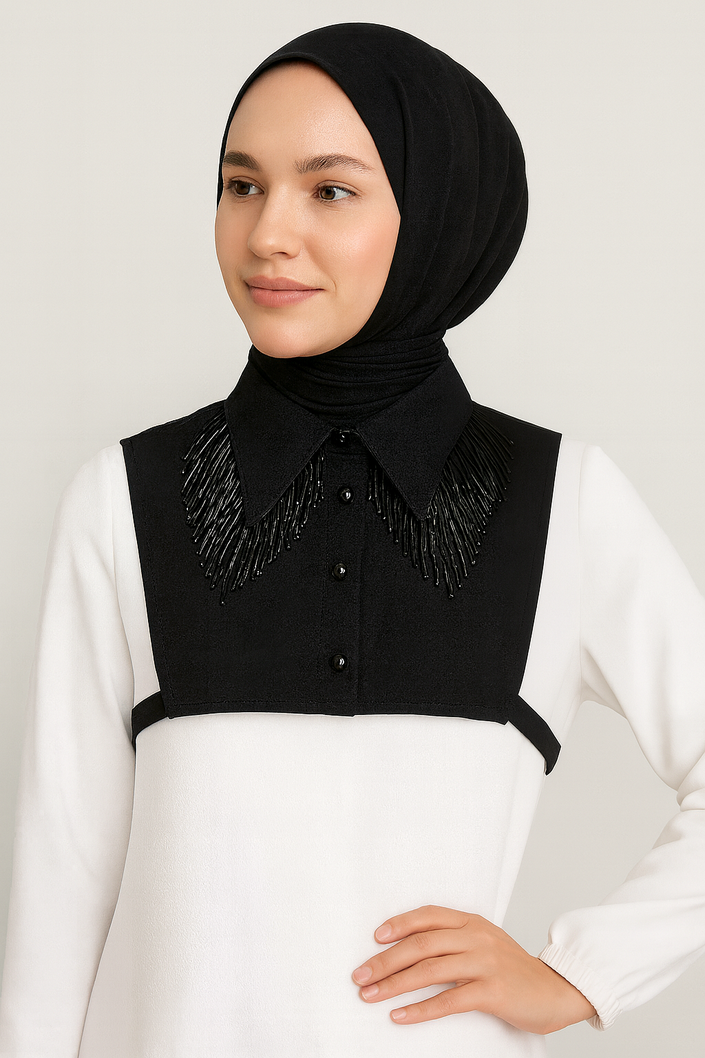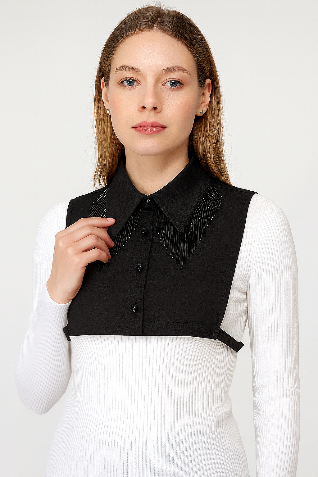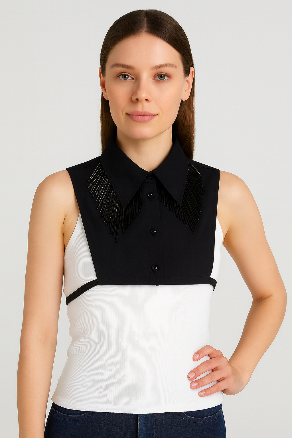 Gece Yarısı Işıltısı Gömlek Yakası - Siyah