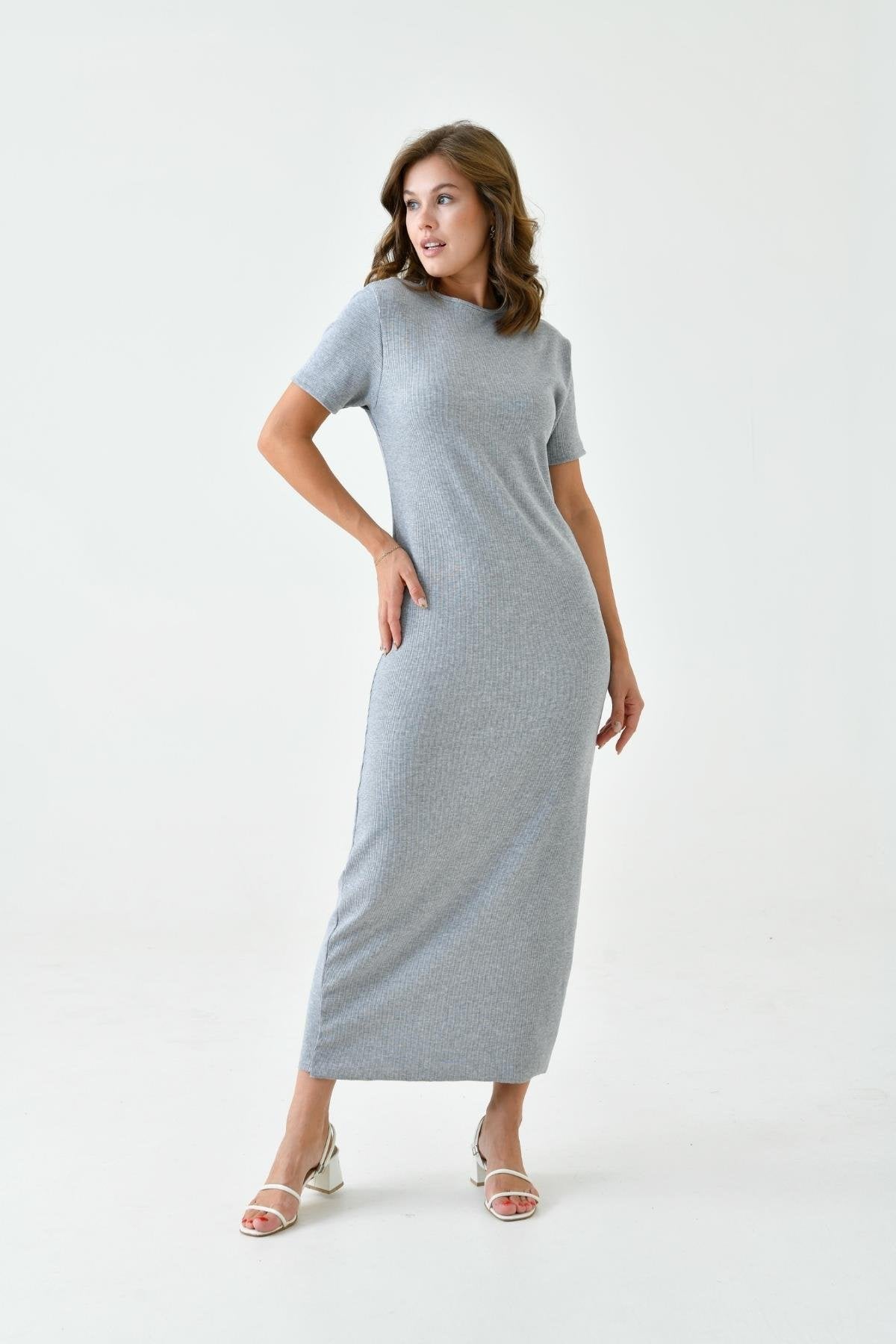 Kısa Kollu Fitilli Elbise - Gri | Outlet