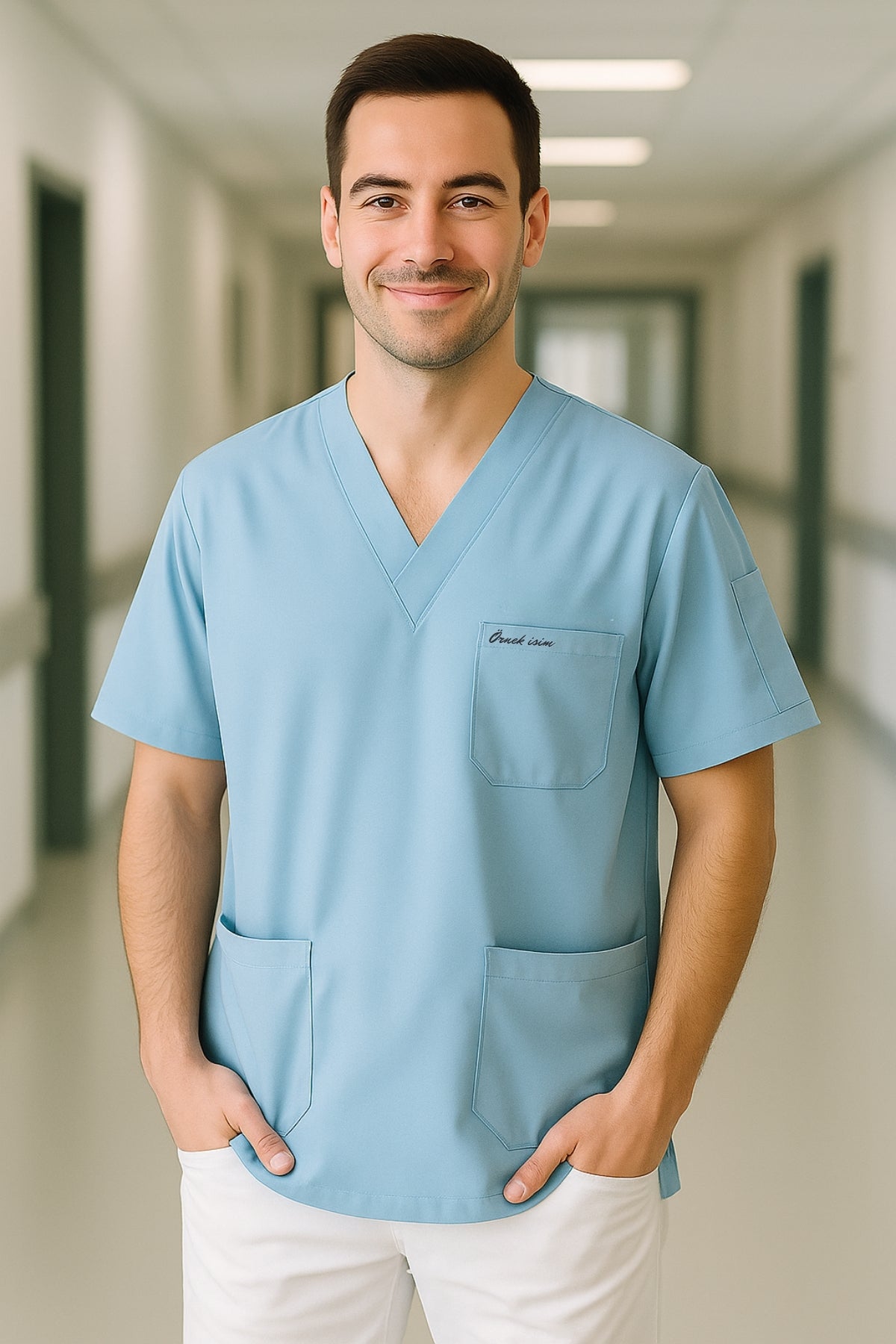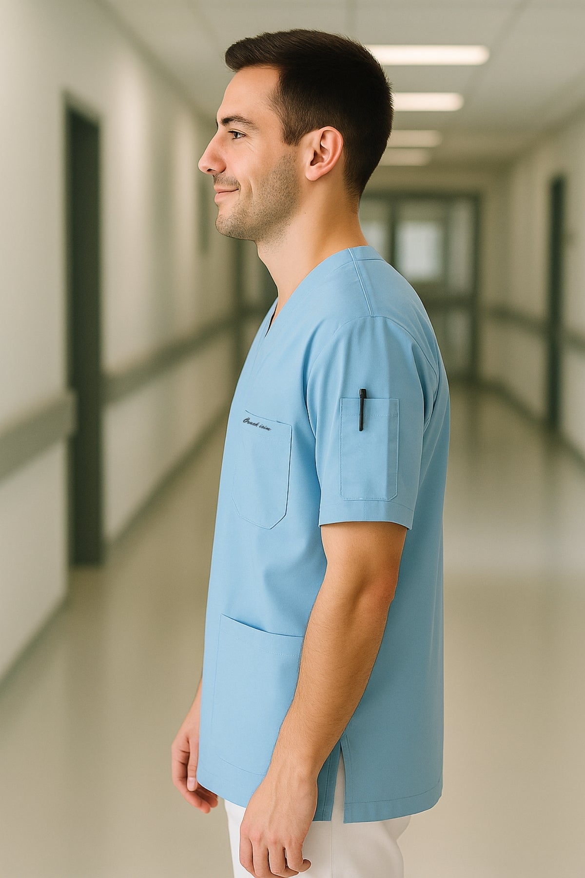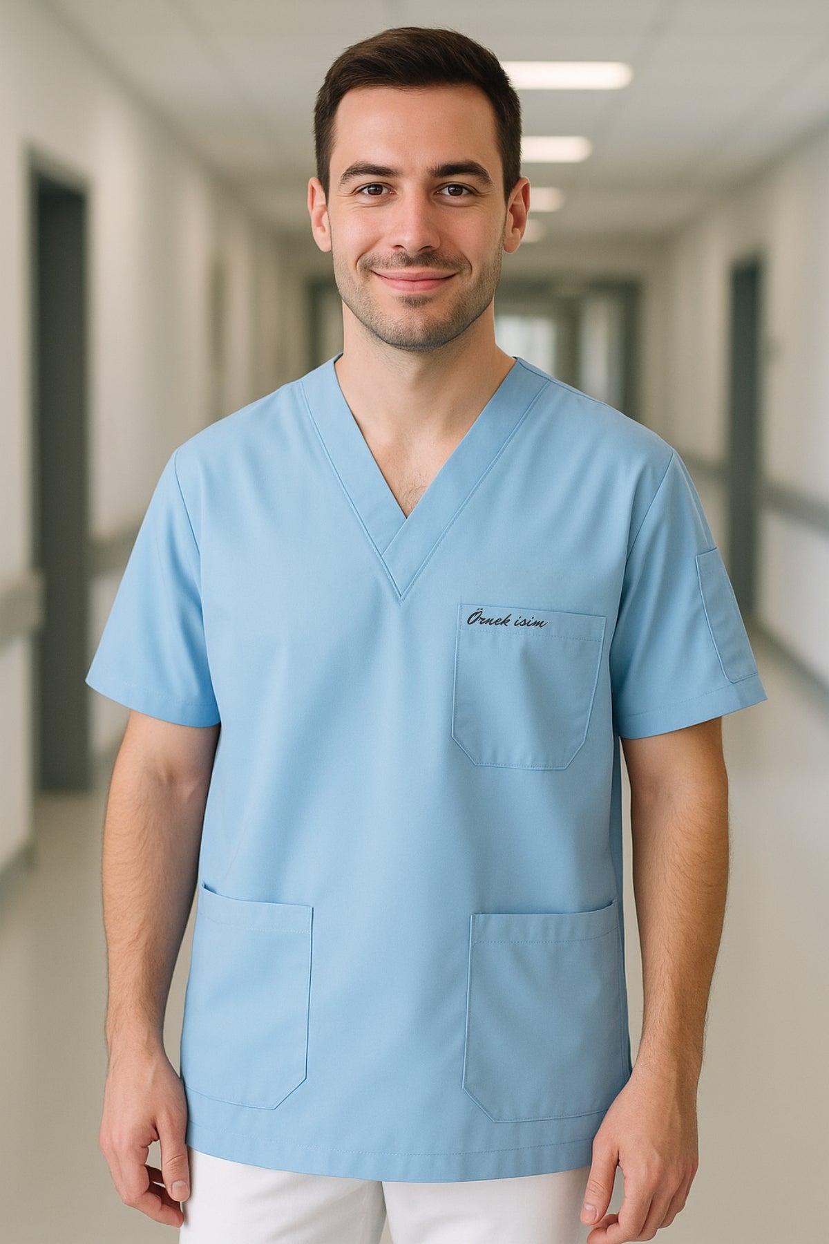 Mirach Med Kişiye Özel İsimli 4 Cepli Scrubs Forma ile hastane ve klinik ortamında profesyonel ve özgün bir görünüm elde edin.