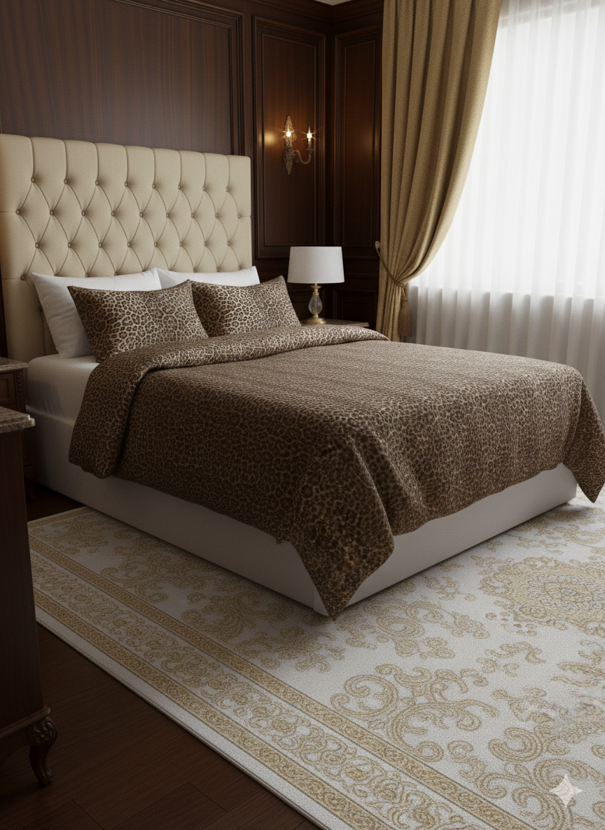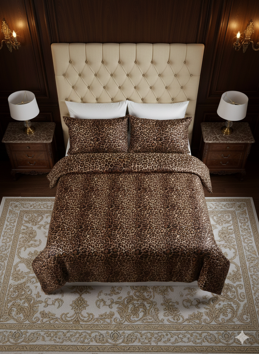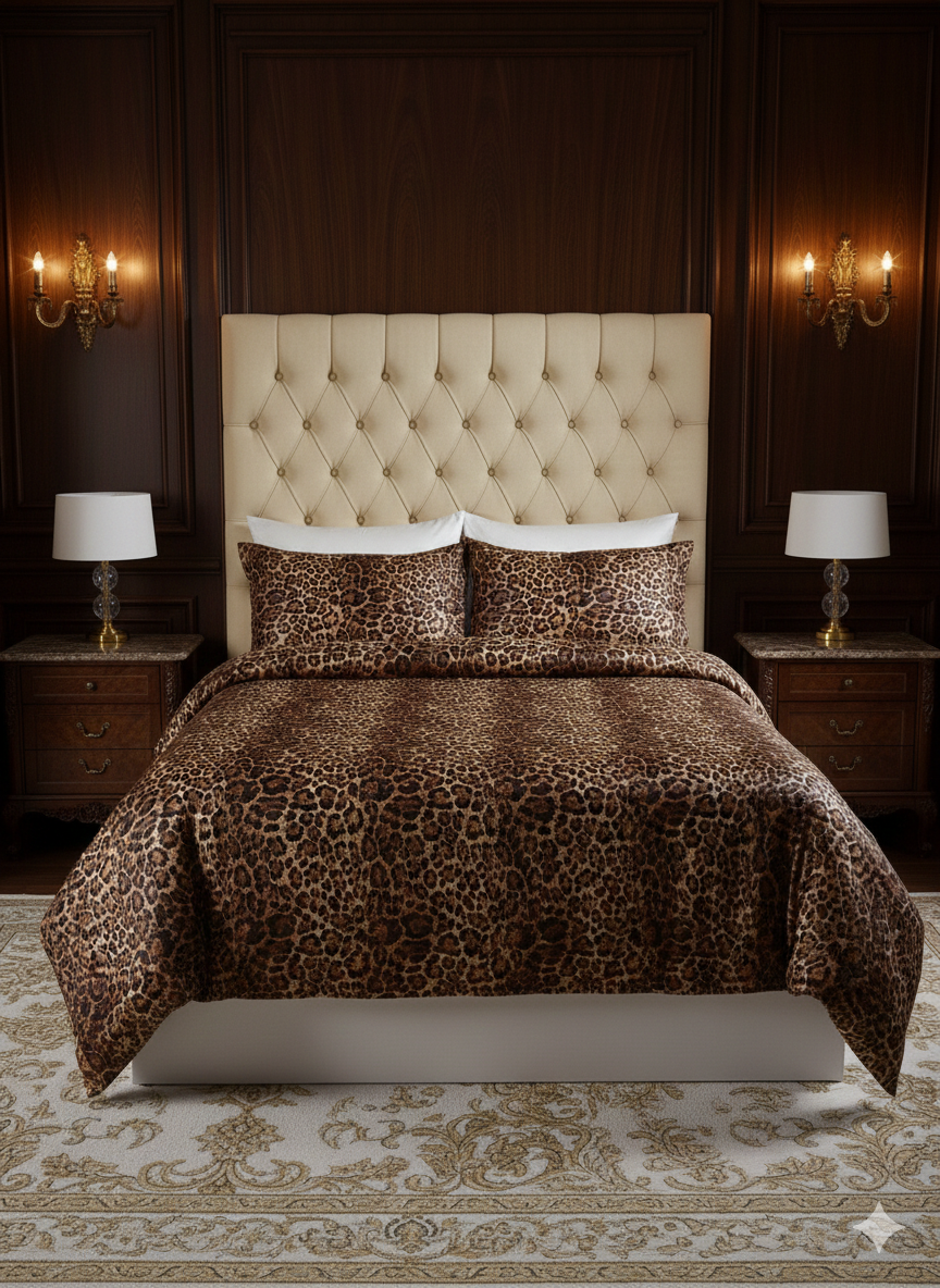 Leopar Desenli %100 pamuk saten nevresim takımı ile yatak odanıza hem lüks hem de modern bir hava katın.