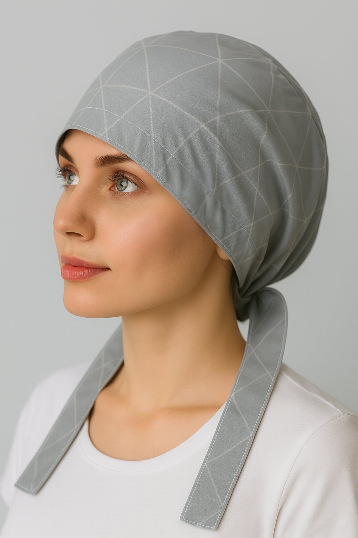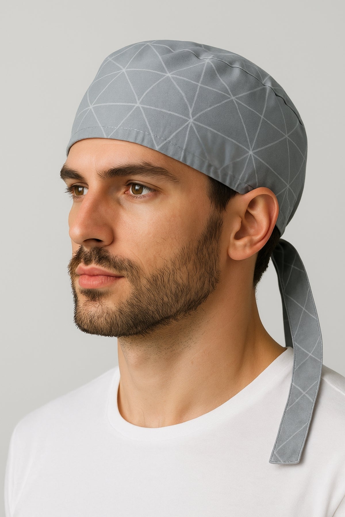 Modern ve şık tasarımıyla öne çıkan Modern Çizgiler Cerrahi Bone, gri tonları üzerine geometrik çizgi desenleriyle hem kadın hem erkek sağlık çalışanları için idealdir. Hafif ve nefes alabilen pamuklu kumaşı sayesinde uzun saatler boyunca konfor sağlar. Ense kısmındaki bağcıkları ile her baş ölçüsüne kolayca uyum sağlar. Unisex yapısı ve modern deseni ile günlük çalışma ortamına stil katarken aynı zamanda pratik kullanım sunar.