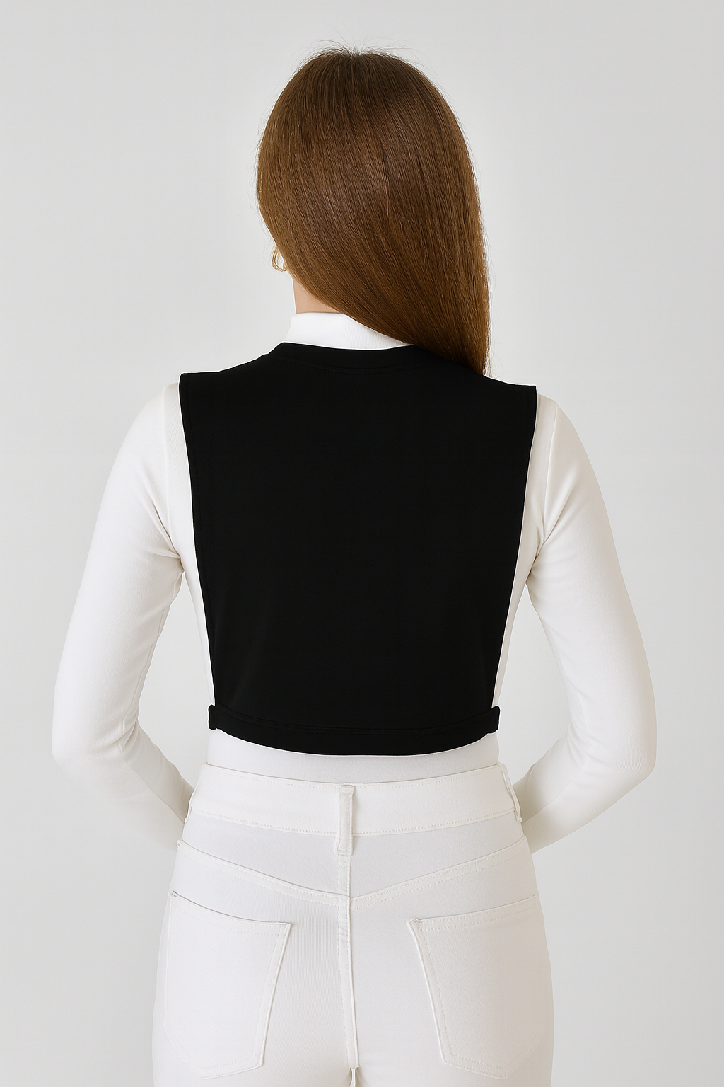Sıfır Yaka Kolsuz Boyunluk - Siyah
