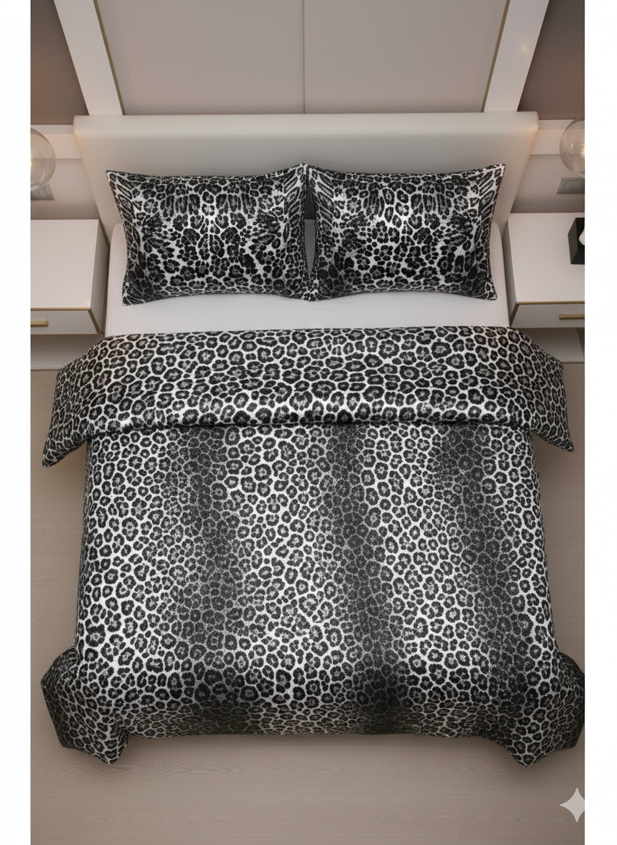 Leopar Desenli %100 Pamuk Saten Çift Kişilik Nevresim Takımı - Siyah Beyaz