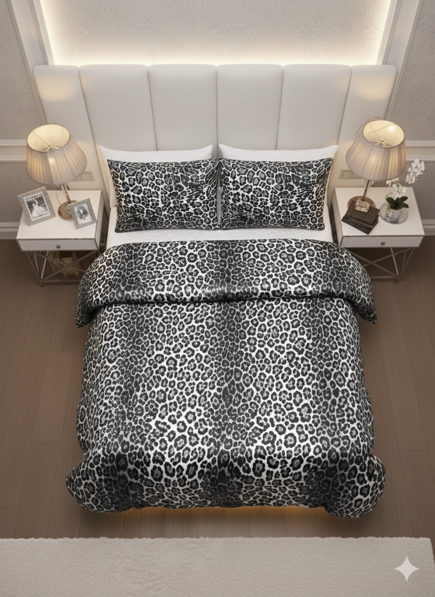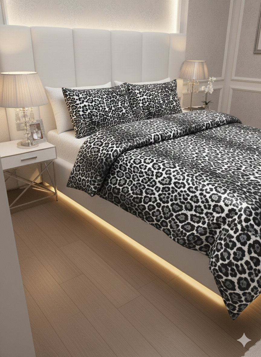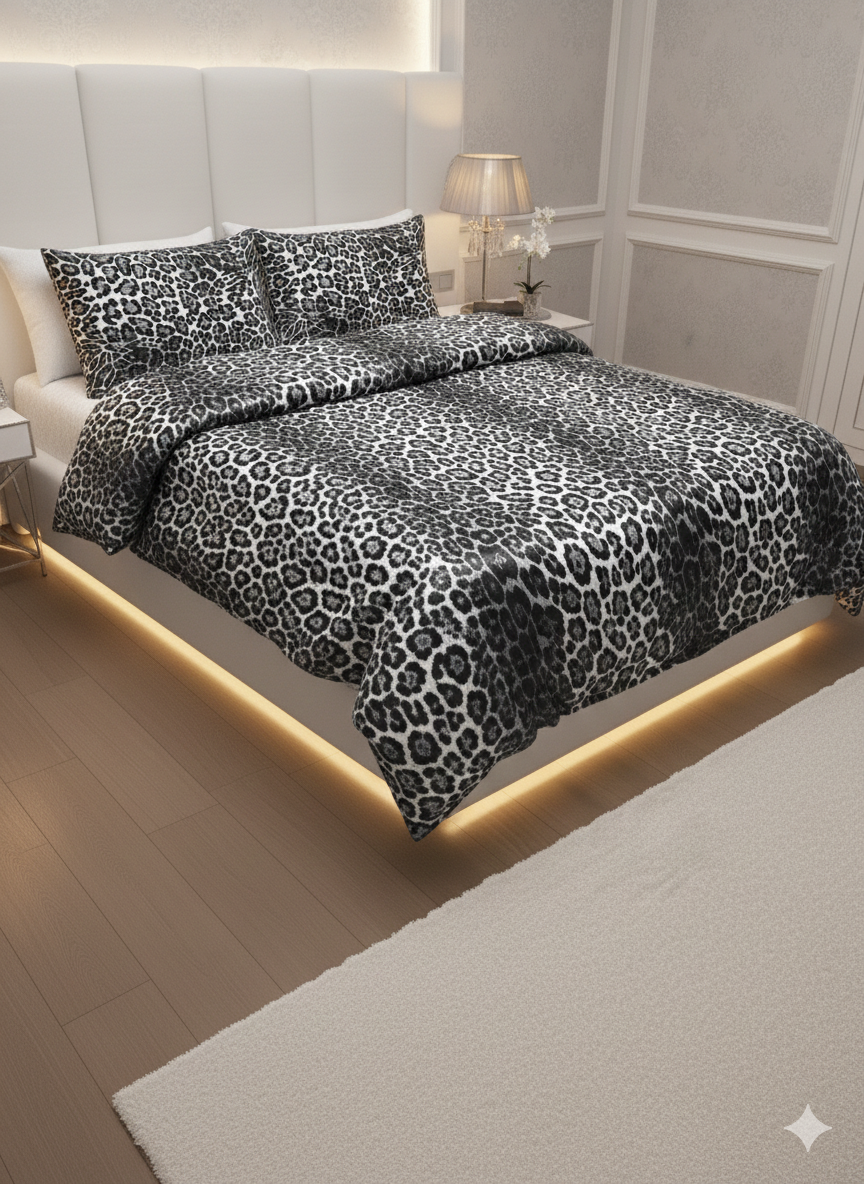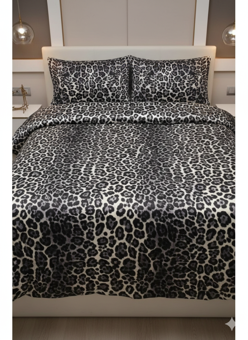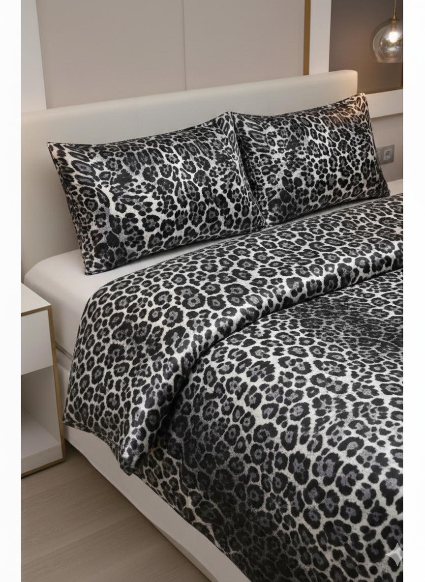 Leopar Desenli %100 pamuk saten nevresim takımı ile yatak odanıza hem lüks hem de modern bir hava katın.