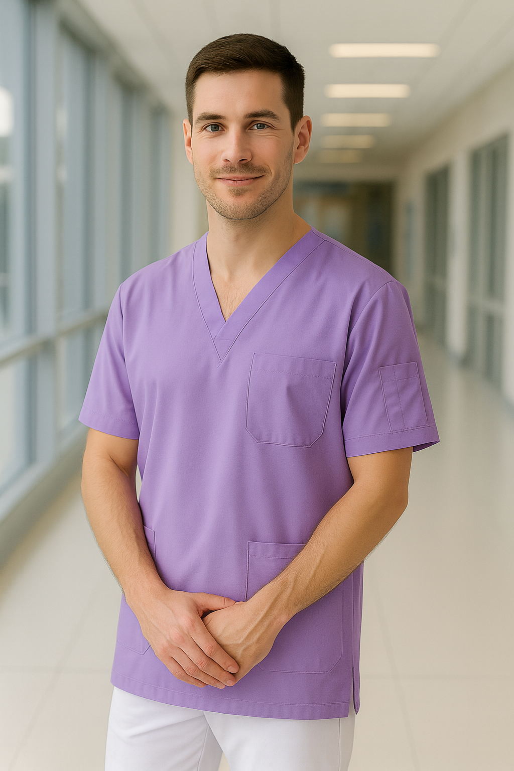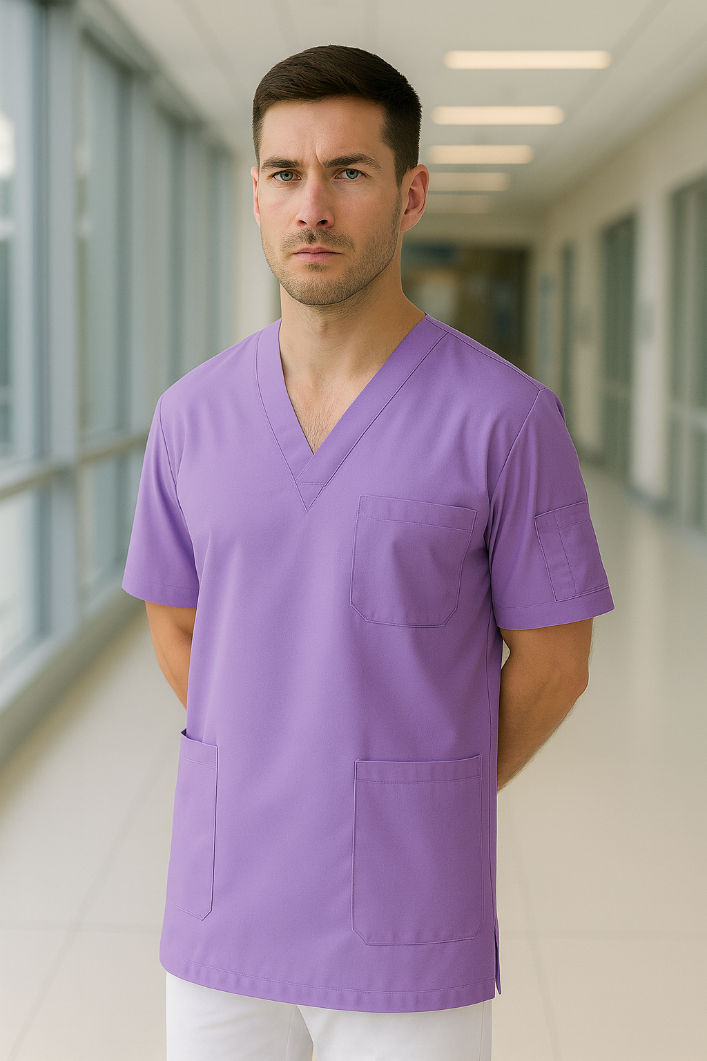 Lila tek üst scrubs forma, sağlık çalışanlarının uzun saatler boyunca ihtiyaç duyduğu konforu ve dayanıklılığı bir arada sunar. %67 PES ve %33 pamuk karışımı özel kumaşı sayesinde terletme ve solma yapmaz, gün boyu nefes alabilen yapısı ile ferahlık sağlar. Unisex kalıpta üretilmiştir; hem kadın hem erkek sağlık çalışanları için uygundur. Kolay ütülenebilir yapısı ile çok buruşma yapmaz, pratik cepleri ile işlevsellik sunar. Klinikler, hastaneler ve laboratuvarlar için profesyonel bir seçimdir.