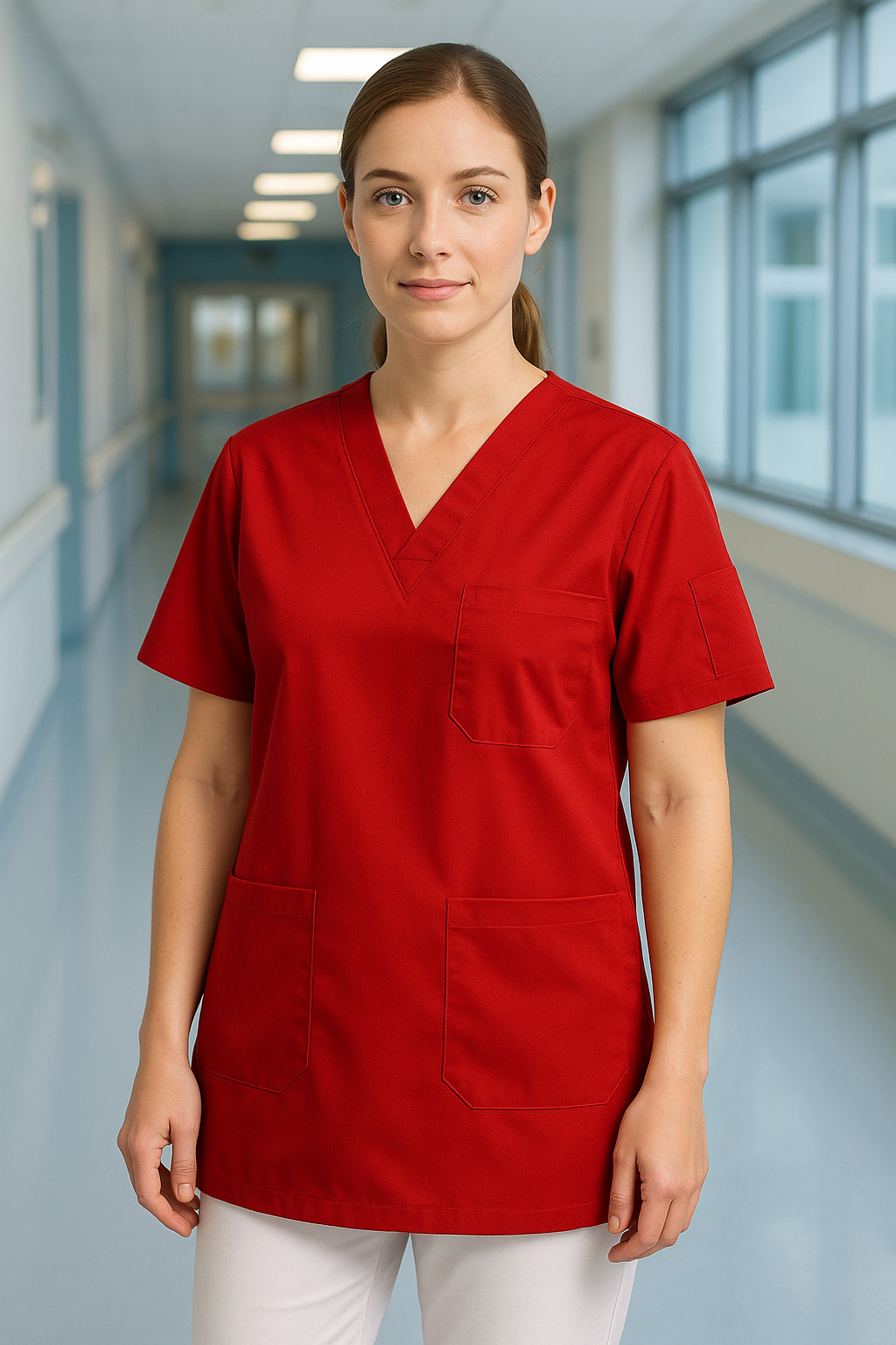 Kırmızı tek üst scrubs forma, sağlık çalışanlarının uzun saatler boyunca ihtiyaç duyduğu konforu ve dayanıklılığı bir arada sunar. %67 PES ve %33 pamuk karışımı özel kumaşı sayesinde terletme ve solma yapmaz, gün boyu nefes alabilen yapısı ile ferahlık sağlar. Unisex kalıpta üretilmiştir; hem kadın hem erkek sağlık çalışanları için uygundur. Kolay ütülenebilir yapısı ile çok buruşma yapmaz, pratik cepleri ile işlevsellik sunar. Klinikler, hastaneler ve laboratuvarlar için profesyonel bir seçimdir.