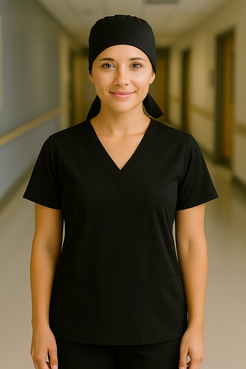 Siyah tek üst scrubs forma, sağlık çalışanlarının uzun saatler boyunca ihtiyaç duyduğu konforu ve dayanıklılığı bir arada sunar. %67 PES ve %33 pamuk karışımı özel kumaşı sayesinde terletme ve solma yapmaz, gün boyu nefes alabilen yapısı ile ferahlık sağlar. Unisex kalıpta üretilmiştir; hem kadın hem erkek sağlık çalışanları için uygundur. Kolay ütülenebilir yapısı ile çok buruşma yapmaz, pratik cepleri ile işlevsellik sunar. Klinikler, hastaneler ve laboratuvarlar için profesyonel bir seçimdir.