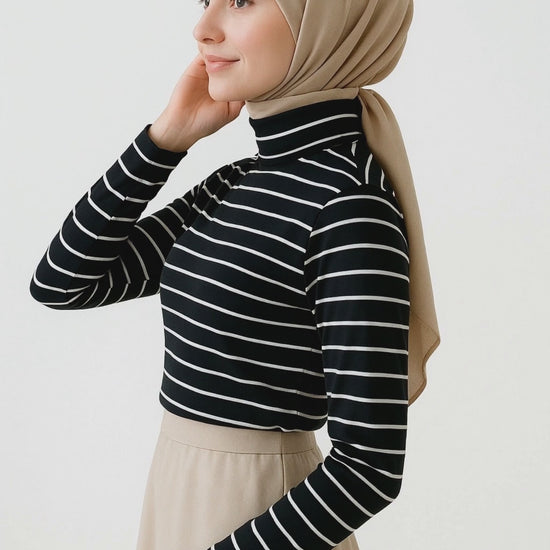 Uzun Kollu Crop Boyunluk - Çizgili (Siyah)